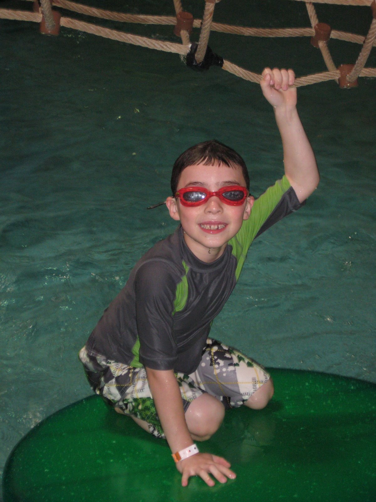 We rented a condo in Wisconsin Dells this past weekend with Aimee and Steve (Jenny’s sister) and Tim and Laura, and their respective children, all of whom range in age from 6 months to 2 years. The weather in Wisconsin had been wonderful, until this weekend. Friday night on the drive up we witnessed gale force winds along with tsunami strength rain. Apparently there was a tornado in one of the areas through which we drove! Not to worry. The resort we were staying at had indoor facilities which we fully intended to utilize. Despite the weather, Friday night went off without a hitch. Everybody got up there safely and the sleeping arrangements were more than adequate.