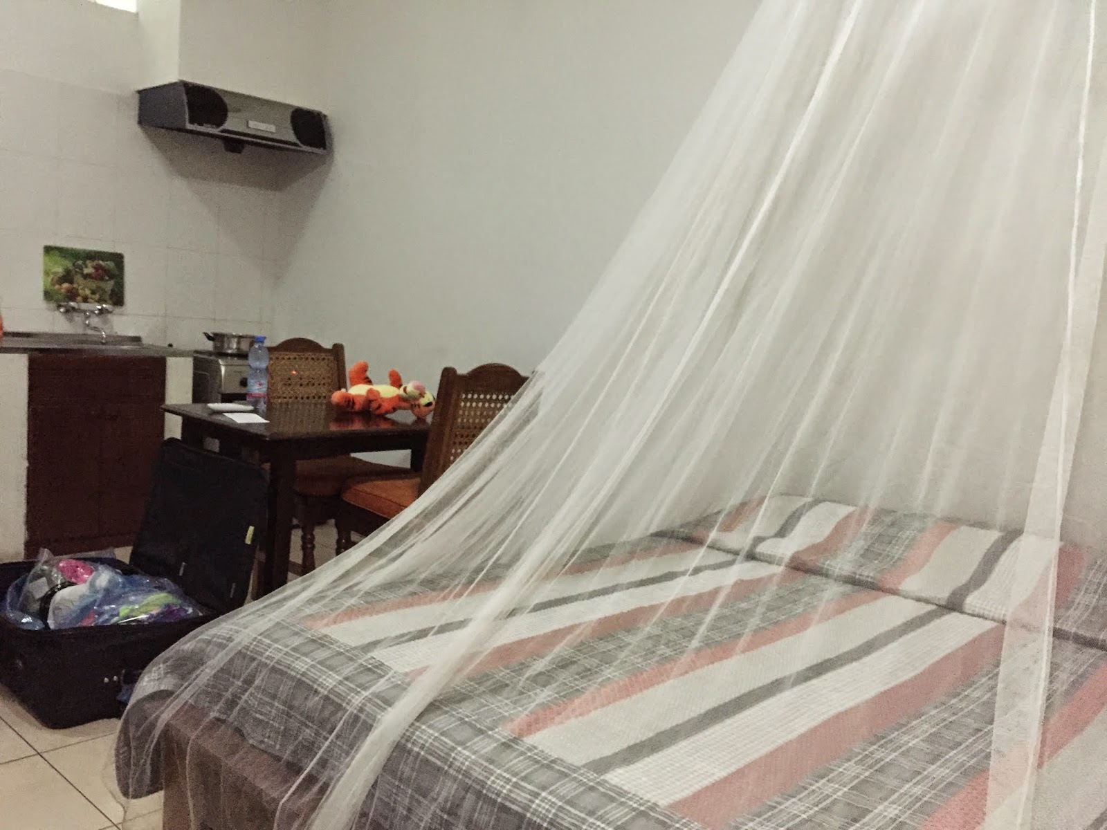 After parking, a man walked us down to my room. I thanked Papa John, paid him for half of his week’s work, and he left, leaving me to myself. After 24+ hours of travel, I was physically and mentally exhausted. But I wanted to unpack, and I needed to take my malaria medication, which you’re supposed to take with food, so I decided to try out my kitchen facilities.